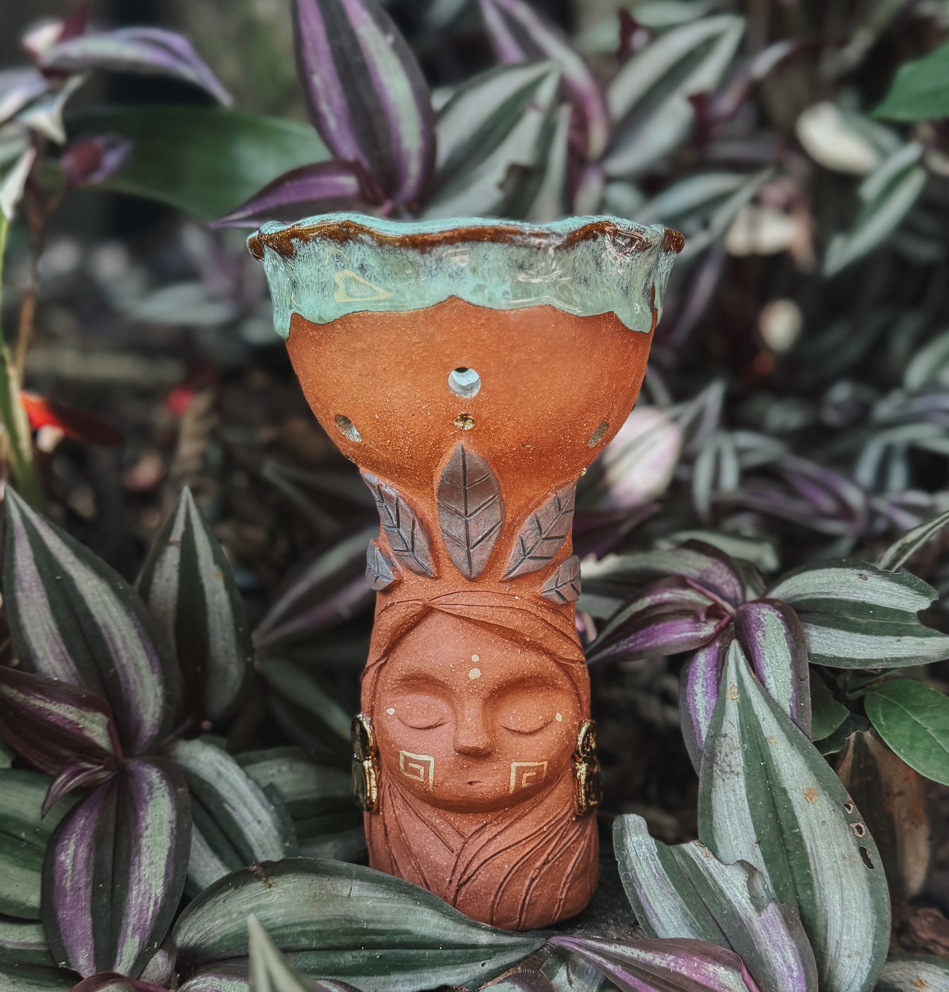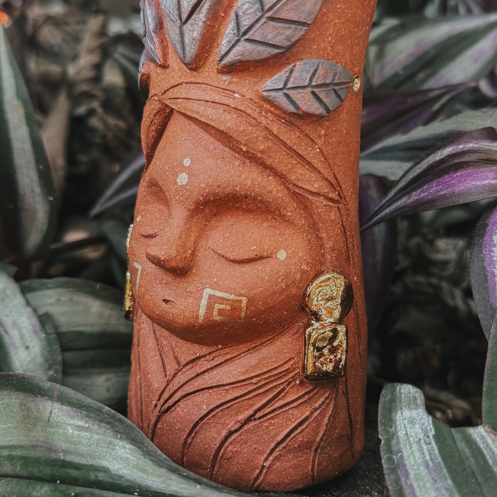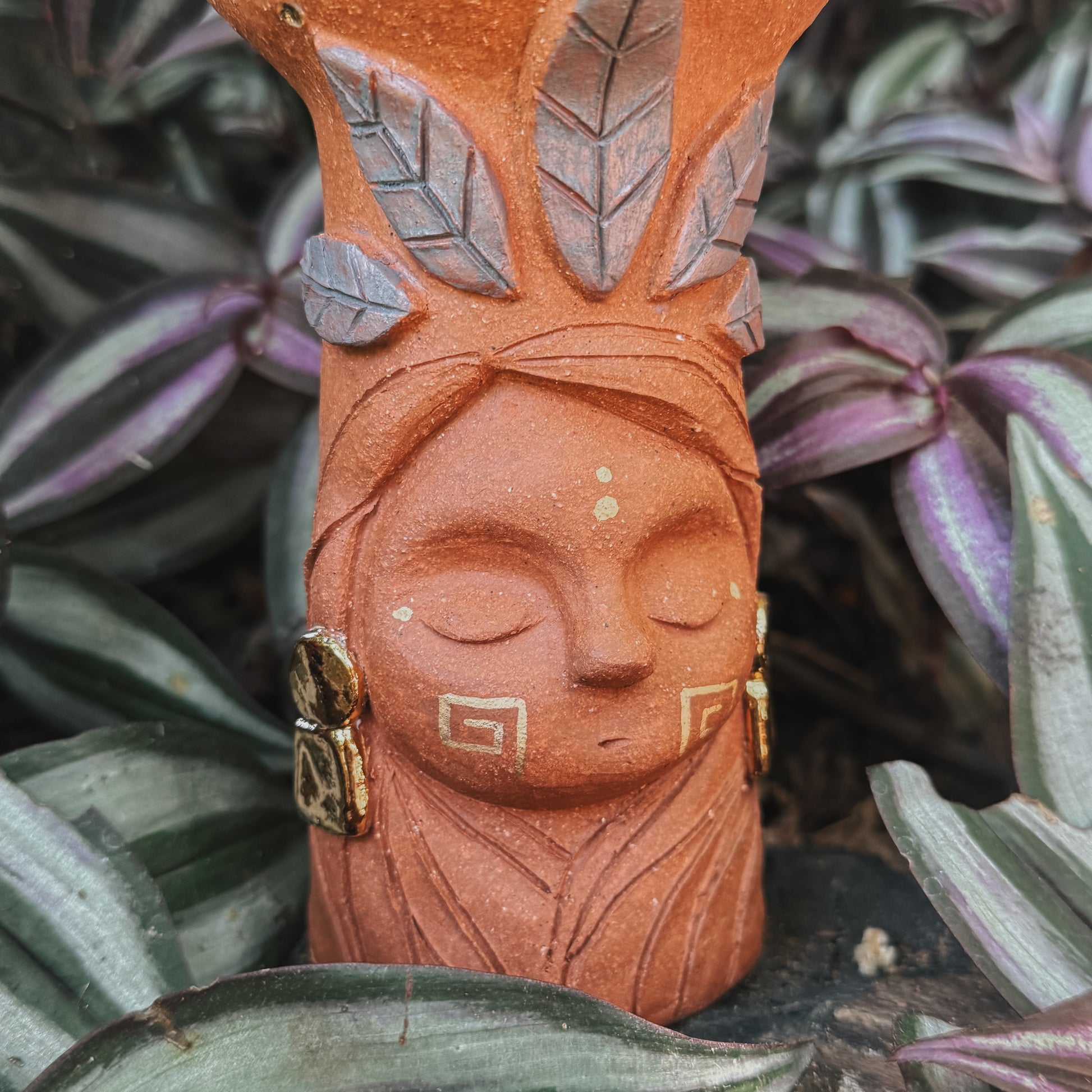 Sahumador Madre Tierra. Nacida del barro y coronada de hojas, esta pieza honra a la gran madre que nos sostiene: fertilidad, abundancia y el eterno abrazo de la Tierra. Su rostro es un canto a Tonantzin y a todas las mujeres que cuidan, nutren y dan vida. Forma parte de la colección Hijas de Tonantzin, creada en conexión con la sabiduría ancestral y el pulso vivo de la naturaleza. ₊˚⊹♡